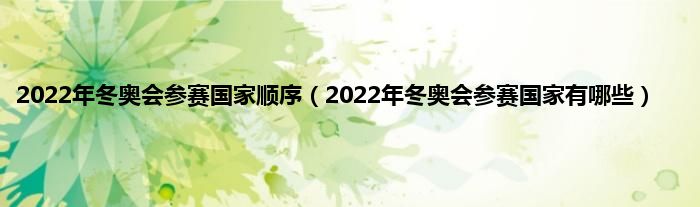 大家好,精选小编来为大家解答以上问题。2022年冬奥会参赛国家顺序,2022年冬奥会参赛国家有哪些很多人还不知道,现在让我们一起来看看吧!