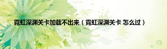 大家好,精选小编来为大家解答以上问题。霓虹深渊关卡加载不出来,霓虹深渊关卡 怎么过很多人还不知道,现在让我们一起来看看吧!
