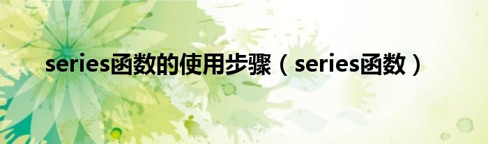 大家好,精选小编来为大家解答以上问题。series函数的使用步骤,series函数很多人还不知道,现在让我们一起来看看吧!