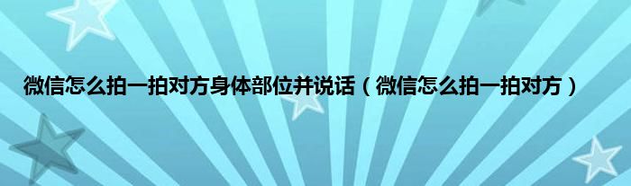 微信怎么拍一拍对方身体部位并说话(微信怎么拍一拍对方)
