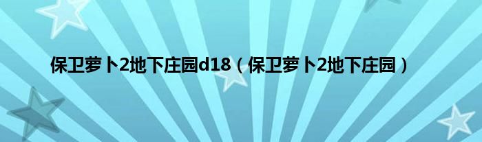 大家好,精选小编来为大家解答以上问题。保卫萝卜2地下庄园d18,保卫萝卜2地下庄园很多人还不知道,现在让我们一起来看看吧!