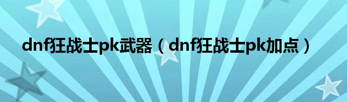 大家好,精选小编来为大家解答以上问题。dnf狂战士pk武器,dnf狂战士pk加点很多人还不知道,现在让我们一起来看看吧!