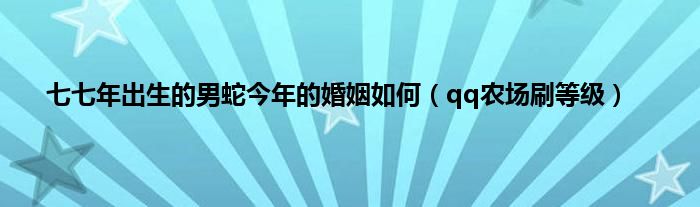 大家好,精选小编来为大家解答以上问题。七七年出生的男蛇今年的婚姻如何,qq农场刷等级很多人还不知道,现在让我们一起来看看吧!