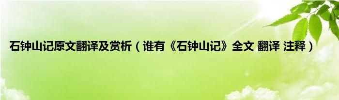 大家好,小常来为大家解答以上问题。石钟山记原文翻译及赏析,谁有《石钟山记》全文 翻译 注释很多人还不知道,现在让我们一起来看看吧!
