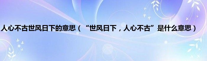 大家好,小常来为大家解答以上问题。人心不古世风日下的意思,“世风日下,人心不古”是什么意思很多人还不知道,现在让我们一起来看看吧!