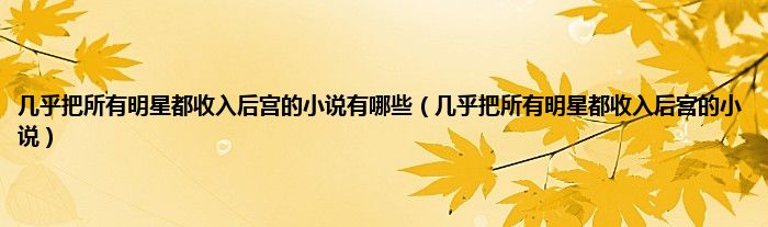 大家好,小常来为大家解答以上问题。几乎把所有明星都收入后宫的小说有哪些,几乎把所有明星都收入后宫的小说很多人还不知道,现在让我们一起来看看吧!