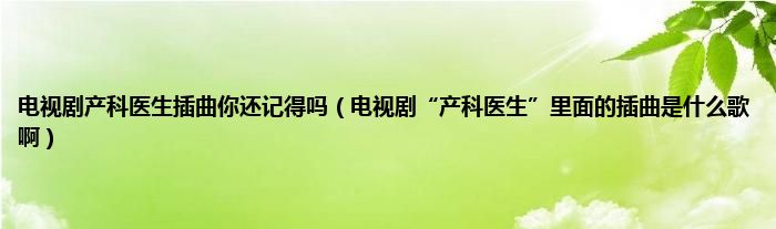 大家好,小常来为大家解答以上问题。电视剧产科医生插曲你还记得吗,电视剧“产科医生”里面的插曲是什么歌啊很多人还不知道,现在让我们一起来看看吧!