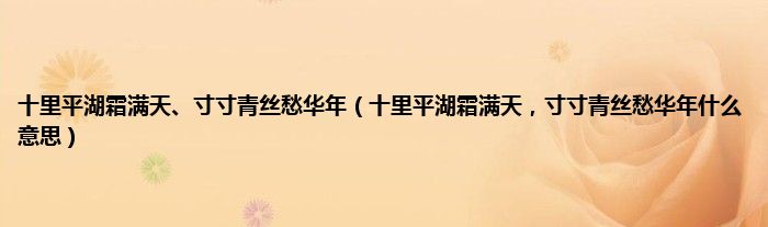大家好,小常来为大家解答以上问题。十里平湖霜满天、寸寸青丝愁华年,十里平湖霜满天,寸寸青丝愁华年什么意思很多人还不知道,现在让我们一起来看看吧!