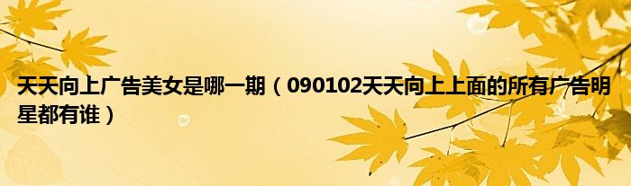 大家好,小常来为大家解答以上问题。天天向上广告美女是哪一期,090102天天向上上面的所有广告明星都有谁很多人还不知道,现在让我们一起来看看吧!