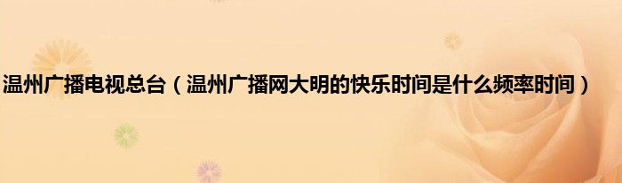 大家好,小常来为大家解答以上问题。温州广播电视总台,温州广播网大明的快乐时间是什么频率时间很多人还不知道,现在让我们一起来看看吧!