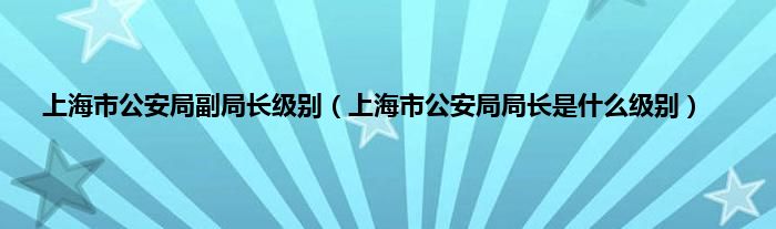 大家好,小常来为大家解答以上问题。上海市公安局副局长级别,上海市公安局局长是什么级别很多人还不知道,现在让我们一起来看看吧!