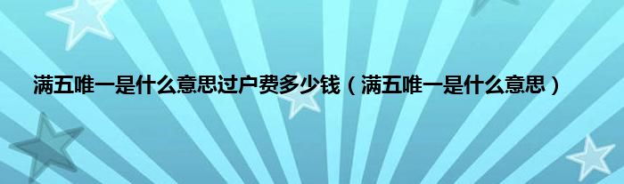 大家好,小常来为大家解答以上问题。满五唯一是什么意思过户费多少钱,满五唯一是什么意思很多人还不知道,现在让我们一起来看看吧!