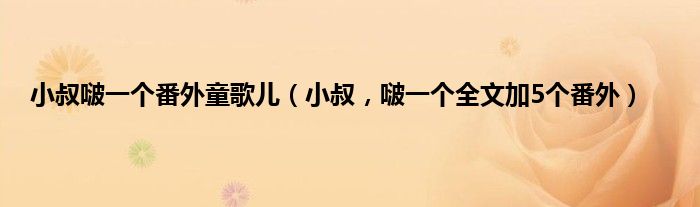 大家好,小常来为大家解答以上问题。小叔啵一个番外童歌儿,小叔,啵一个全文加5个番外很多人还不知道,现在让我们一起来看看吧!