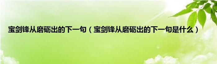 大家好,小常来为大家解答以上问题。宝剑锋从磨砺出的下一句,宝剑锋从磨砺出的下一句是什么很多人还不知道,现在让我们一起来看看吧!