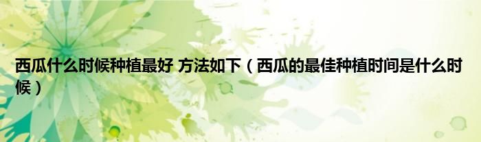 大家好,小常来为大家解答以上问题。西瓜什么时候种植最好 方法如下,西瓜的最佳种植时间是什么时候很多人还不知道,现在让我们一起来看看吧!