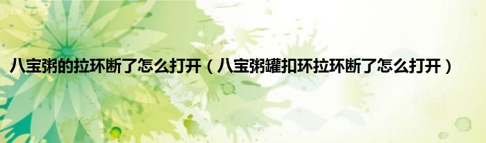 大家好,小常来为大家解答以上问题。八宝粥的拉环断了怎么打开,八宝粥罐扣环拉环断了怎么打开很多人还不知道,现在让我们一起来看看吧!