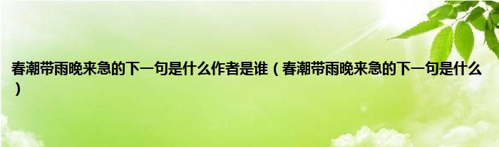 大家好,小常来为大家解答以上问题。春潮带雨晚来急的下一句是什么作者是谁,春潮带雨晚来急的下一句是什么很多人还不知道,现在让我们一起来看看吧!
