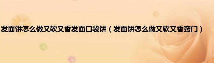 大家好,小科来为大家解答以上问题。发面饼怎么做又软又香发面口袋饼,发面饼怎么做又软又香窍门很多人还不知道,现在让我们一起来看看吧!
