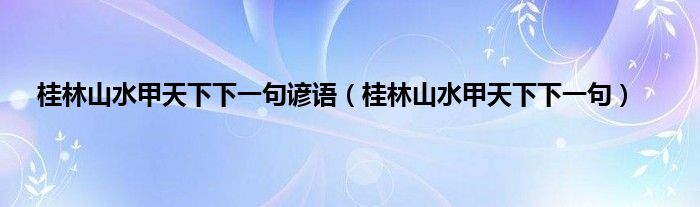 大家好,小科来为大家解答以上问题。桂林山水甲天下下一句谚语,桂林山水甲天下下一句很多人还不知道,现在让我们一起来看看吧!