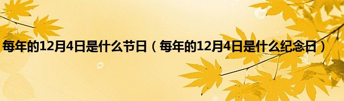 大家好,小常来为大家解答以上问题。每年的12月4日是什么节日,每年的12月4日是什么纪念日很多人还不知道,现在让我们一起来看看吧!