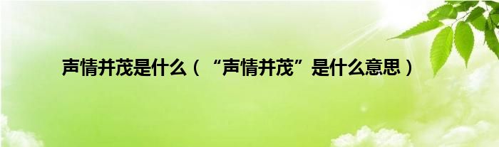 “声情并茂”的意思指演唱的音色、唱腔和表达的感情都很动人。【拼音】:shēngqíngbìngmào【解释】:并:都;茂:草木丰盛的样子,引申为美好。指演唱的音色、唱腔和表达的感情都很动人。【出处】:清·珠泉居士《续板桥杂记·张玉秀》:“余于王氏水阁听演《寻亲记·跌包》一出,声情并茂,不亚梨园能手。”【拼音代码】:sqbm【反义词】:枯燥乏味【用法】:作谓语、定语;指有声作品等。【造句】: