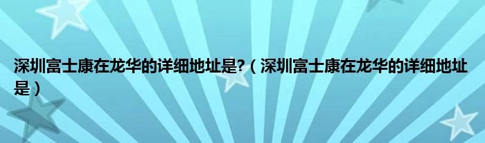 大家好,小常来为大家解答以上问题。深圳富士康在龙华的详细地址是?,深圳富士康在龙华的详细地址是很多人还不知道,现在让我们一起来看看吧!