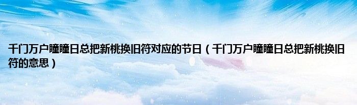 大家好,小常来为大家解答以上问题。千门万户瞳瞳日总把新桃换旧符对应的节日,千门万户瞳瞳日总把新桃换旧符的意思很多人还不知道,现在让我们一起来看看吧!