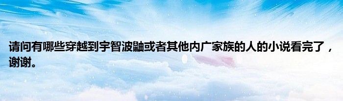 大家好,小常来为大家解答以上问题。请问有哪些穿越到宇智波鼬或者其他内广家族的人的小说看完了,谢谢。很多人还不知道,现在让我们一起来看看吧!