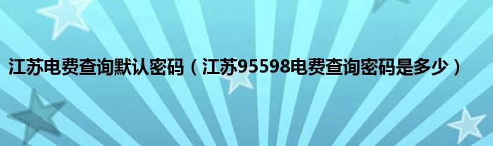 大家好,小常来为大家解答以上问题。江苏电费查询默认密码,江苏95598电费查询密码是多少很多人还不知道,现在让我们一起来看看吧!