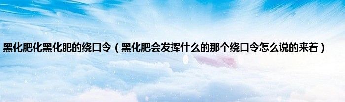 大家好,小常来为大家解答以上问题。黑化肥化黑化肥的绕口令,黑化肥会发挥什么的那个绕口令怎么说的来着很多人还不知道,现在让我们一起来看看吧!