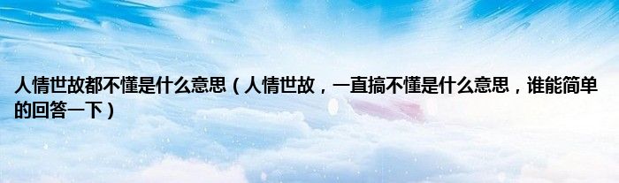 大家好,小常来为大家解答以上问题。人情世故都不懂是什么意思,人情世故,一直搞不懂是什么意思,谁能简单的回答一下很多人还不知道,现在让我们一起来看看吧!