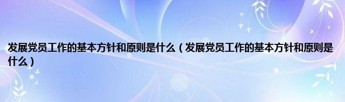 大家好,小常来为大家解答以上问题。发展党员工作的基本方针和原则是什么,发展党员工作的基本方针和原则是什么很多人还不知道,现在让我们一起来看看吧!