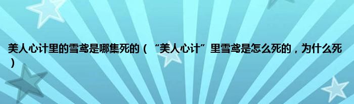 大家好,小常来为大家解答以上问题。美人心计里的雪鸢是哪集死的,“美人心计”里雪鸢是怎么死的,为什么死很多人还不知道,现在让我们一起来看看吧!