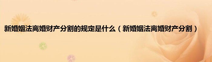 大家好,小科来为大家解答以上问题。新婚姻法离婚财产分割的规定是什么,新婚姻法离婚财产分割很多人还不知道,现在让我们一起来看看吧!