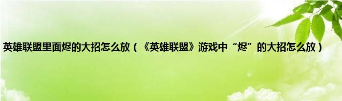 大家好,小常来为大家解答以上问题。英雄联盟里面烬的大招怎么放,《英雄联盟》游戏中“烬”的大招怎么放很多人还不知道,现在让我们一起来看看吧!