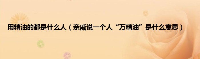 大家好,小常来为大家解答以上问题。用精油的都是什么人,亲戚说一个人“万精油”是什么意思很多人还不知道,现在让我们一起来看看吧!