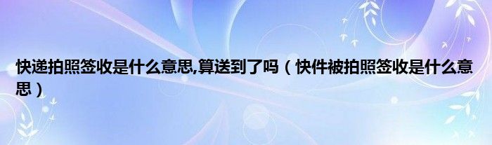 大家好,小常来为大家解答以上问题。快递拍照签收是什么意思,算送到了吗,快件被拍照签收是什么意思很多人还不知道,现在让我们一起来看看吧!