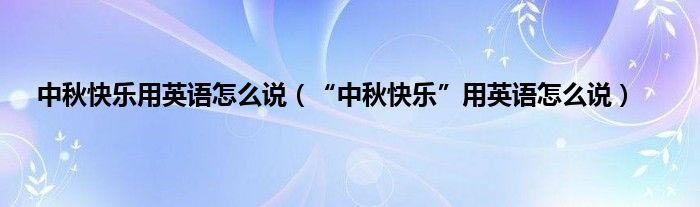 中秋节快乐【英文】HappyMid-AutumnFestival【例句】TheMid-Autumnfestivalseason,Imissyou,intoathickbriefinformation,throughthreethousandfeethigh,andthencomebackandtellyougentlyturn-back:happyMid-Autumnfestival!中秋时节,我对你浓浓的思念,都化作一条条简短的信息,穿过三千尺的高空,然后折返回来,轻轻告诉你:中秋节快乐!扩展资料1、祝中秋节快乐IwishHappyMid-AutumnFestival;WishyouhappyMid-AutumnFestival2、我们中秋节快乐WeHappyMid-AutumnFestival3、姐妹中秋节快乐SisterhappyMid-AutumnFestival4、猪你中秋节快乐PigyouhappyMid-AutumnFestival5、朋友们中秋节快乐FriendshappyMid-AutumnFestival