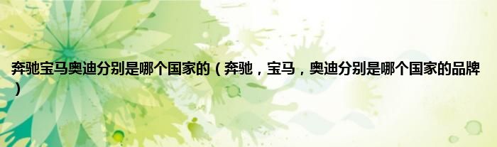 大家好,小常来为大家解答以上问题。奔驰宝马奥迪分别是哪个国家的,奔驰,宝马,奥迪分别是哪个国家的品牌很多人还不知道,现在让我们一起来看看吧!