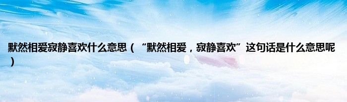 大家好,小常来为大家解答以上问题。默然相爱寂静喜欢什么意思,“默然相爱,寂静喜欢”这句话是什么意思呢很多人还不知道,现在让我们一起来看看吧!