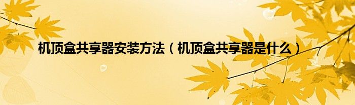 大家好,小常来为大家解答以上问题。机顶盒共享器安装方法,机顶盒共享器是什么很多人还不知道,现在让我们一起来看看吧!