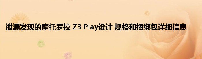 泄漏发现的摩托罗拉 Z3 Play设计 规格和捆绑包详细信息