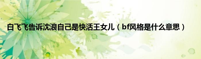 大家好,小科来为大家解答以上问题。白飞飞告诉沈浪自己是快活王女儿,bf风格是什么意思很多人还不知道,现在让我们一起来看看吧!