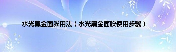 大家好,小科来为大家解答以上问题。水光黑金面膜用法,水光黑金面膜使用步骤很多人还不知道,现在让我们一起来看看吧!