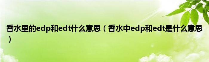 大家好,小科来为大家解答以上问题。香水里的edp和edt什么意思,香水中edp和edt是什么意思很多人还不知道,现在让我们一起来看看吧!