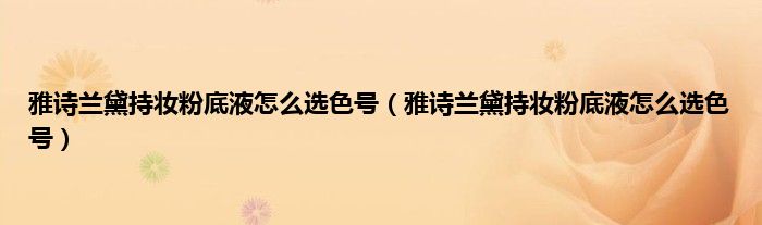 大家好,小科来为大家解答以上问题。雅诗兰黛持妆粉底液怎么选色号,雅诗兰黛持妆粉底液怎么选色号很多人还不知道,现在让我们一起来看看吧!