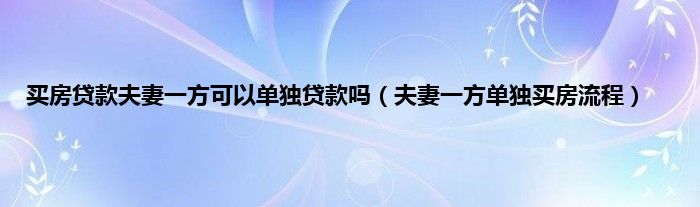 大家好,小常来为大家解答以上问题。买房贷款夫妻一方可以单独贷款吗,夫妻一方单独买房流程很多人还不知道,现在让我们一起来看看吧!