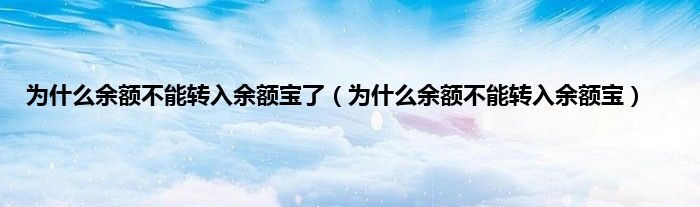 大家好,小常来为大家解答以上问题。为什么余额不能转入余额宝了,为什么余额不能转入余额宝很多人还不知道,现在让我们一起来看看吧!