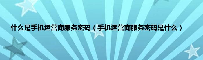 大家好,小常来为大家解答以上问题。什么是手机运营商服务密码,手机运营商服务密码是什么很多人还不知道,现在让我们一起来看看吧!