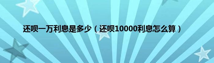 大家好,小常来为大家解答以上问题。还呗一万利息是多少,还呗10000利息怎么算很多人还不知道,现在让我们一起来看看吧!